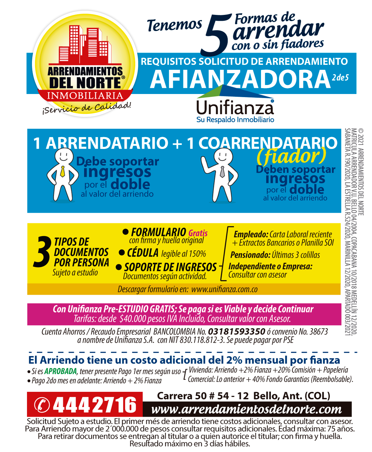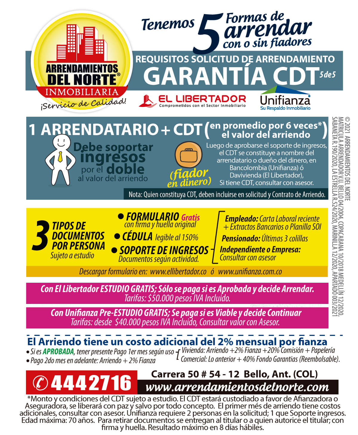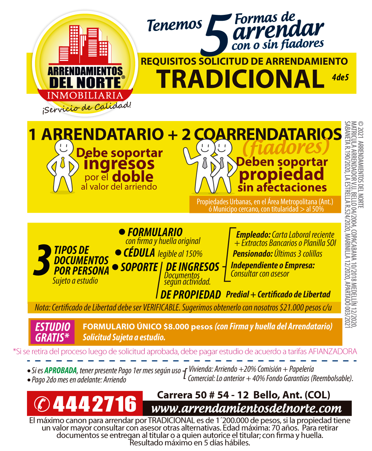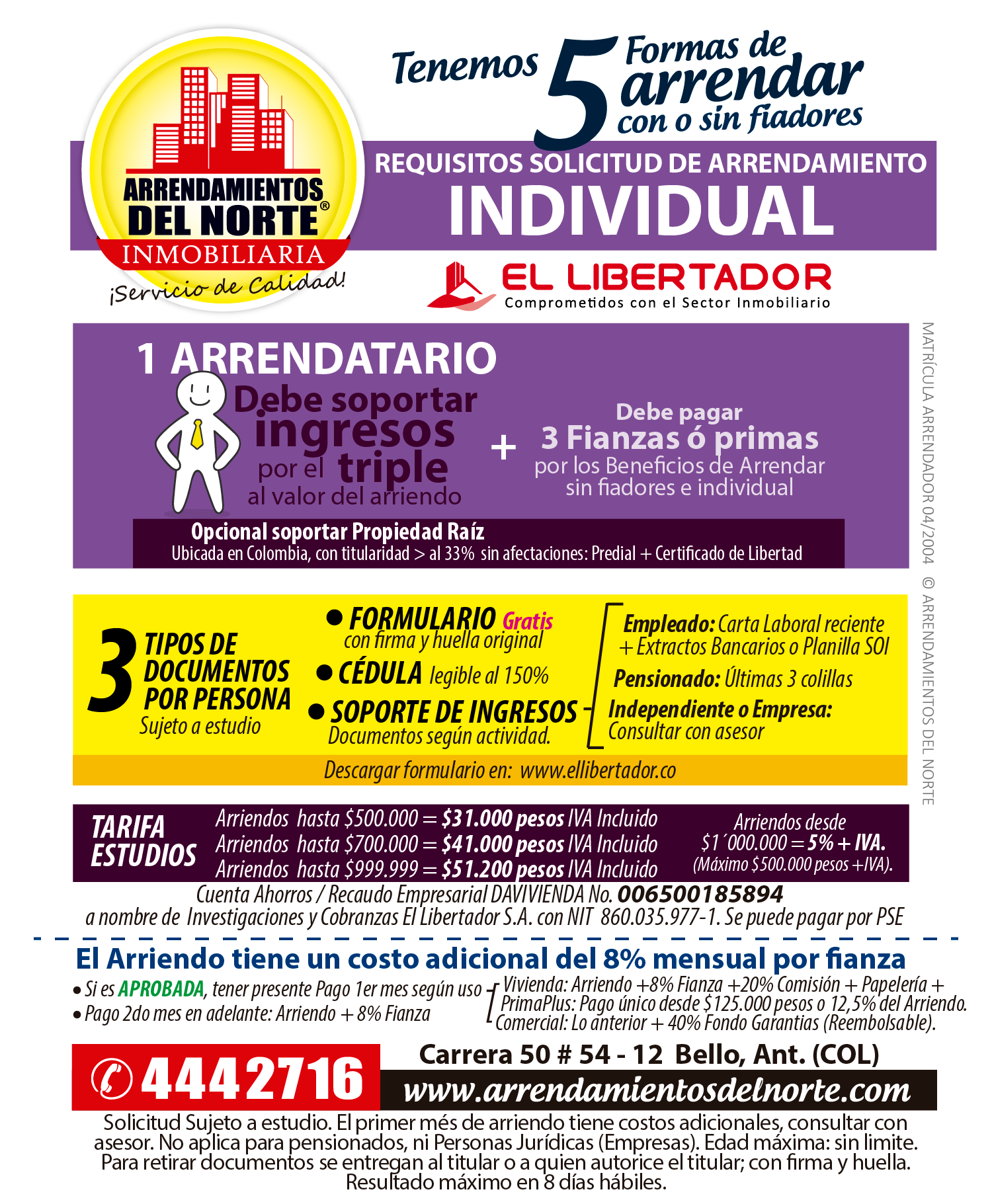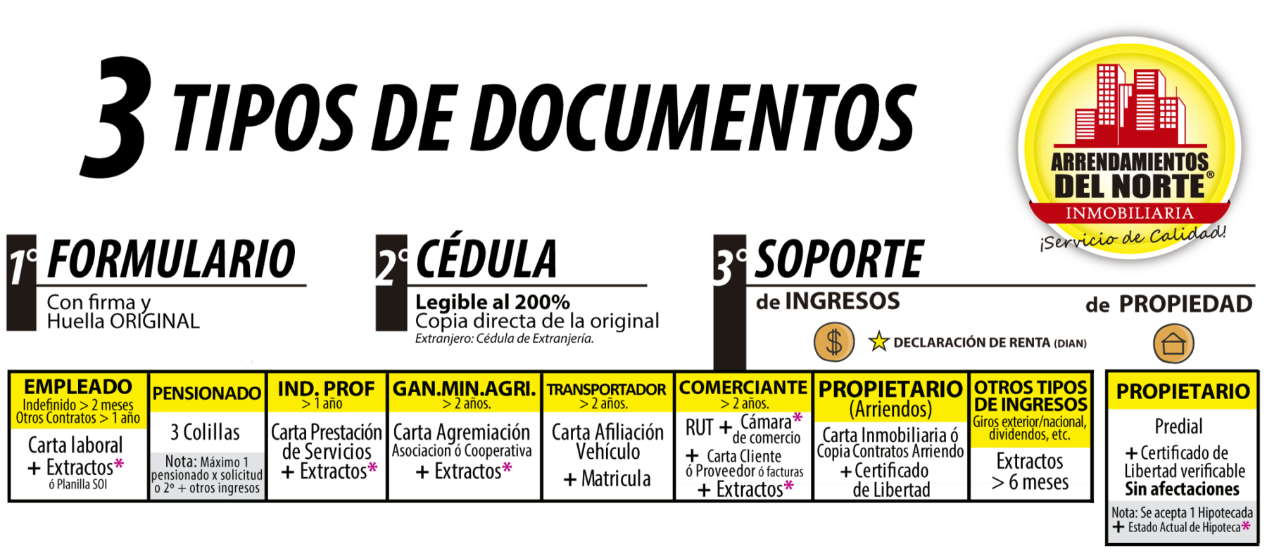 Solo requerimos 3 tipos de documentos por persona, para cualquiera de las 5 formas de arrendar: